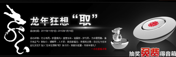 自身分析:2012年悅禮網(wǎng)推出“龍年狂想取”迷你小音箱。官網(wǎng)舉辦了一系列抽獎(jiǎng)活動(dòng),急需線(xiàn)上推廣支持。